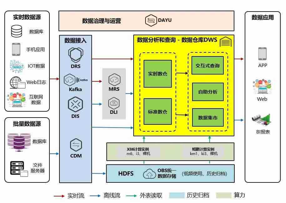 交通银行数据仓库(DWS)采用梦之城鲲泰R722服务器作为数据底座,,,,采用MPP(Massive Parallel Processing)架构,,,,支持行存储与列存储,,,,提供PB(Petabyte,,2的50次方字节)级别数据量的处理能力。。